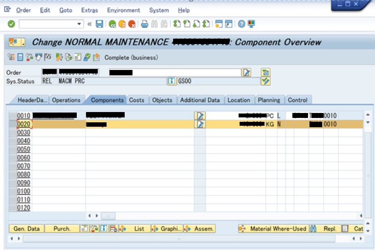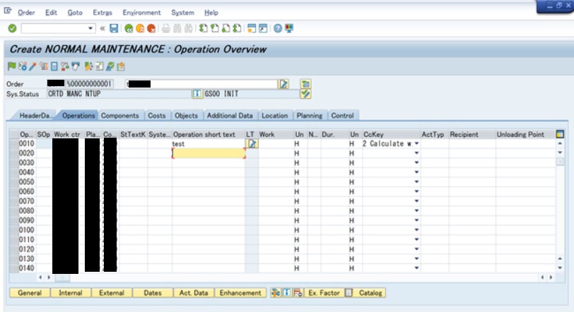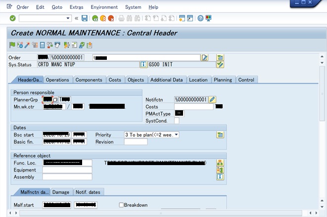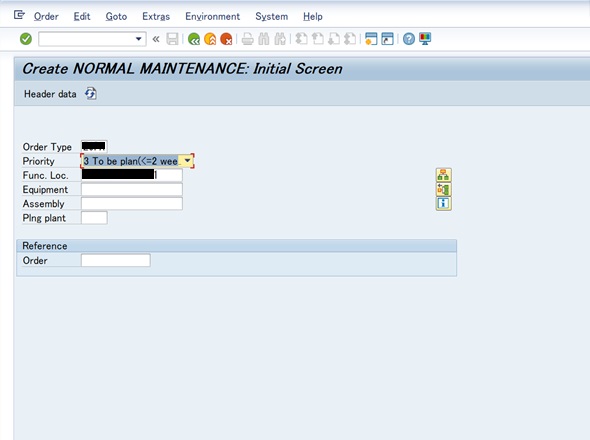 | 7 | Reference order | 既存の保全指図を参照して新たに保全指図を登録する場合、参照元の保全指図を入力 |