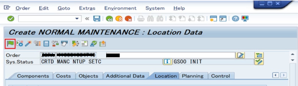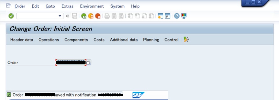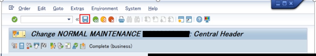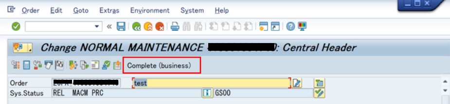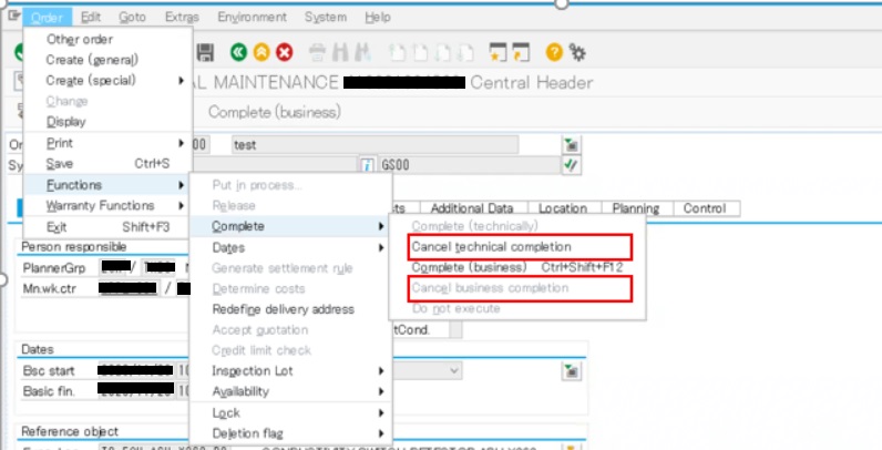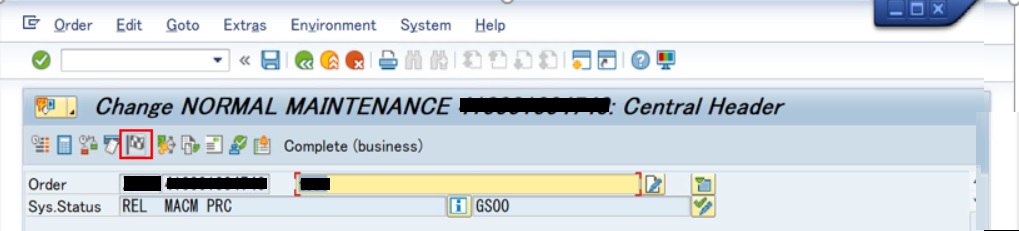 ステータスがTECOの保全指図に対して一切の変更(計画、実績とも収益/原価の追加、変更)を不可にする場合は、ステータスを完了(業務)に変更する必要があります。