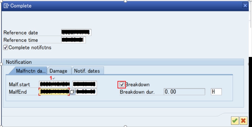 | 1 | Date of Malfunction(End) | 作業の完了日時を入力 |